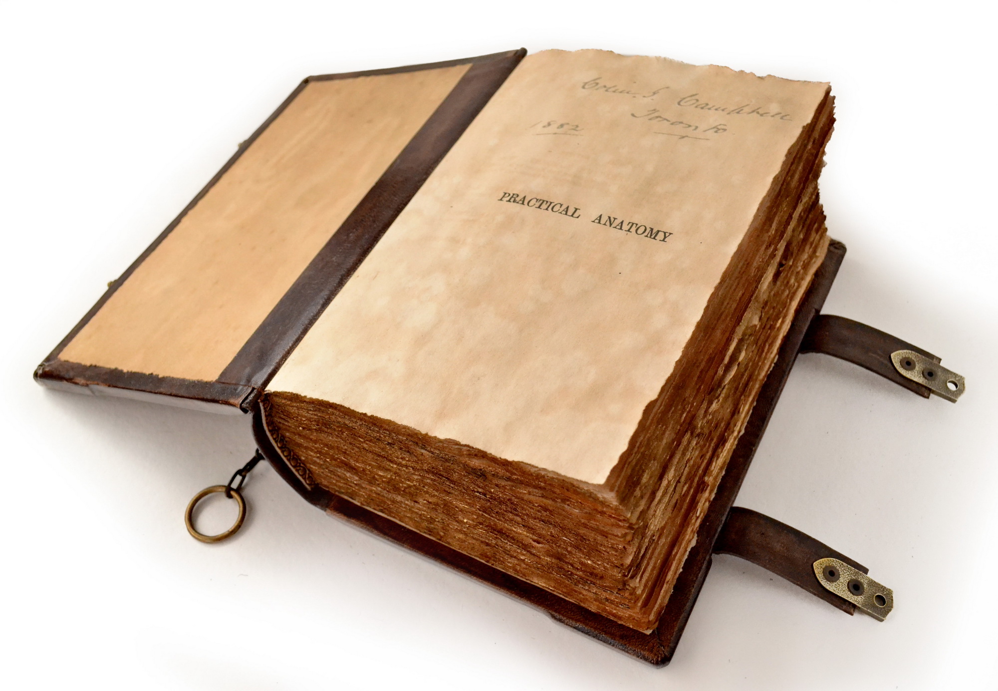 Introducing a truly extraordinary creation: “A Masterpiece Unveiled: The Custom Order of Practical Anatomy.” This remarkable book stands as a testament to meticulous craftsmanship and attention to detail. While the book cover remains unchanged from our previous ‘Anatomia’ books, the true marvel lies within its pages. This custom ordered book showcases a unique transformation, as the printed old book “Practical Anatomy” from 1881 breathes new life into the journal’s interior.