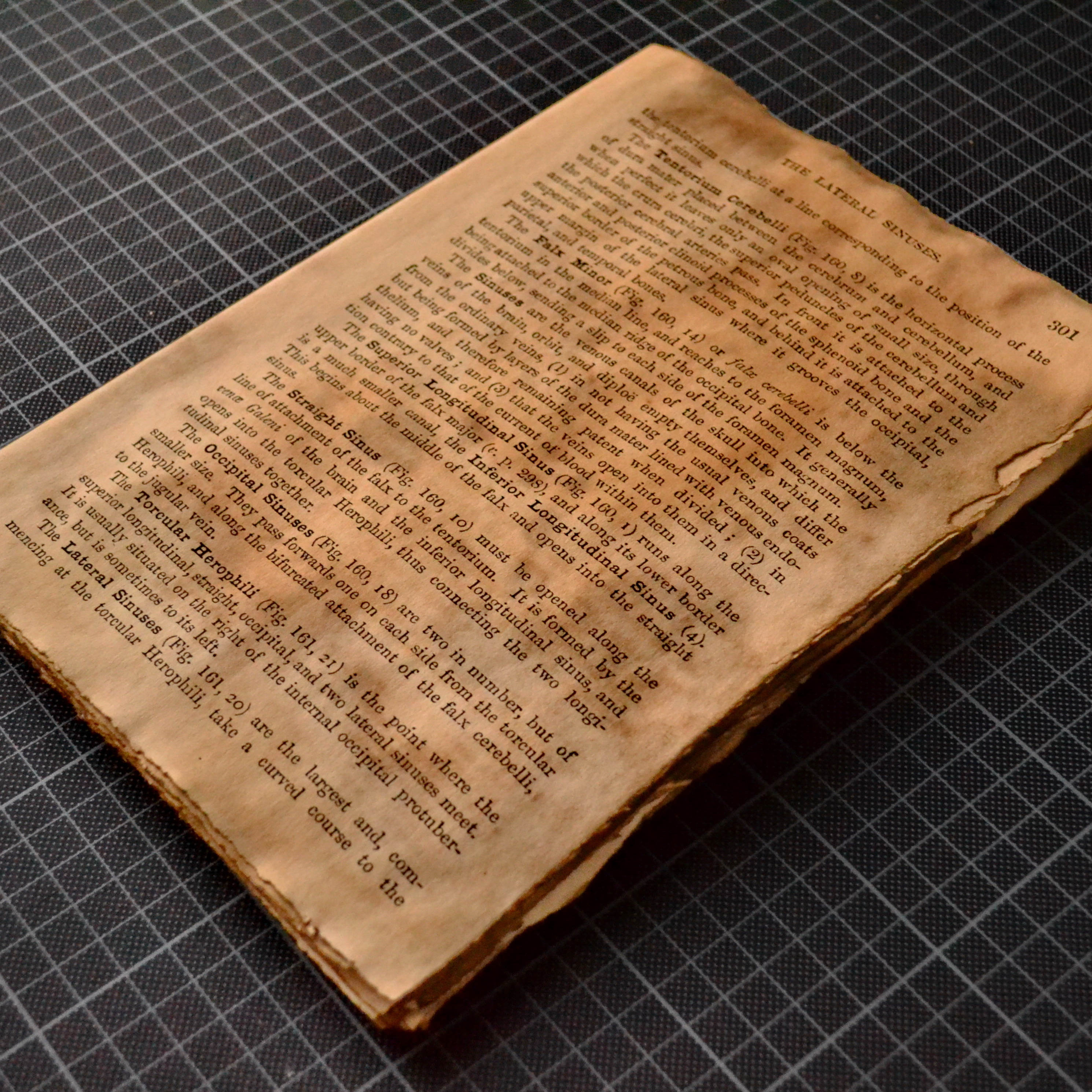 The journey of this custom order began with a PDF file containing low-quality, yellowed pages from the original book. Converting the PDF into high-quality JPG images was just the first step. The painstaking process involved manually removing the yellow hue from each page, meticulously preparing the images for proper printing order, and delicately tearing and aging all 611 book pages. This endeavor required dedicated time and effort. It is important to acknowledge the invaluable assistance of the customer in cleaning and converting the pages into the appropriate format. From a modest 30 MB PDF, the result evolved into a stunning collection of realistic book pages, spanning a staggering 3 gigabytes in size.