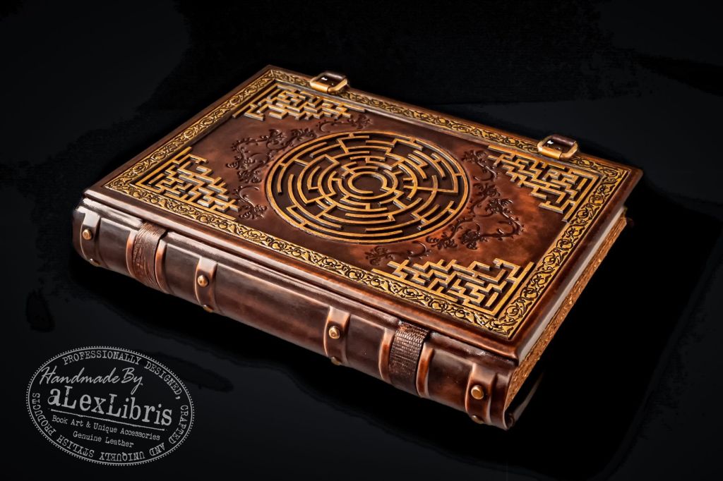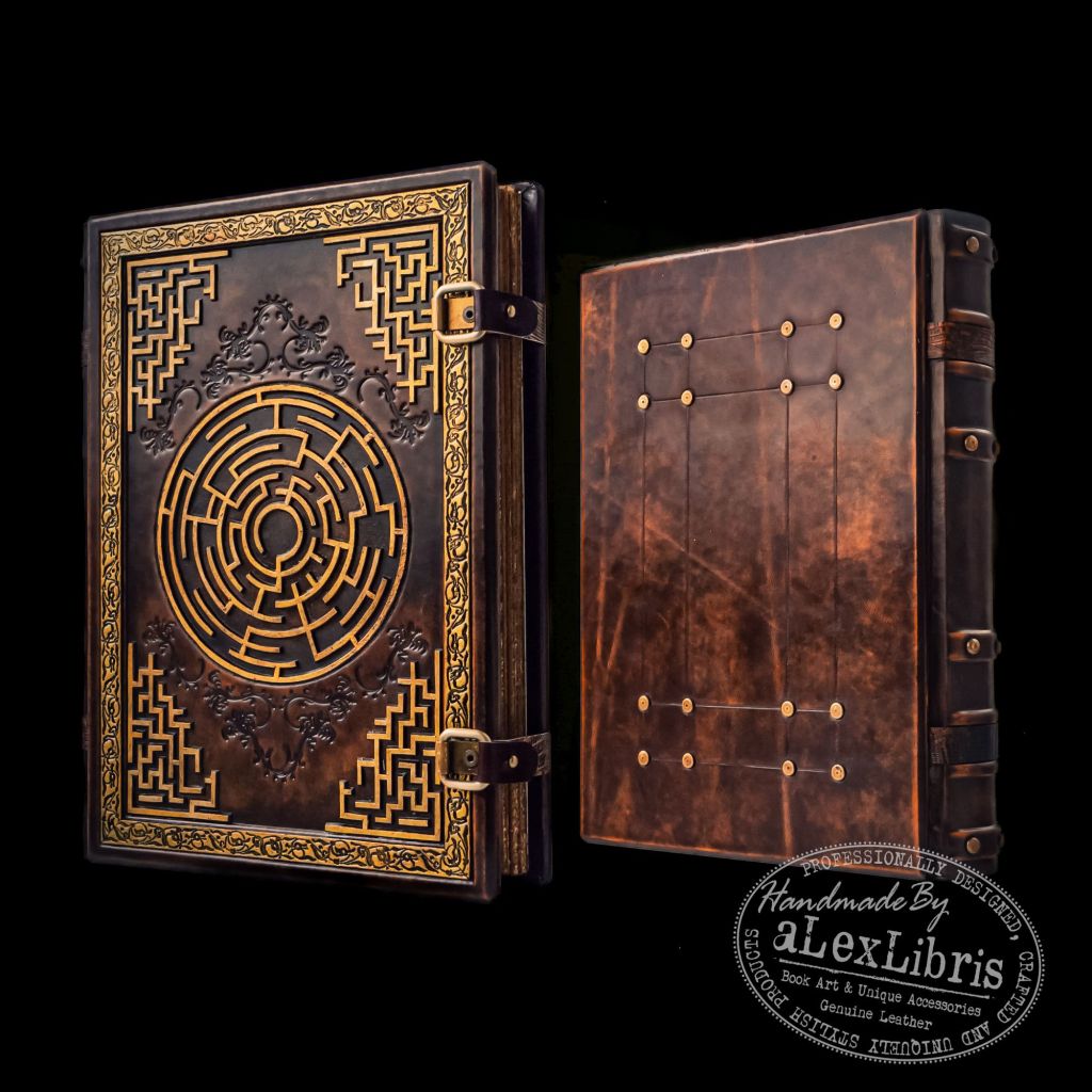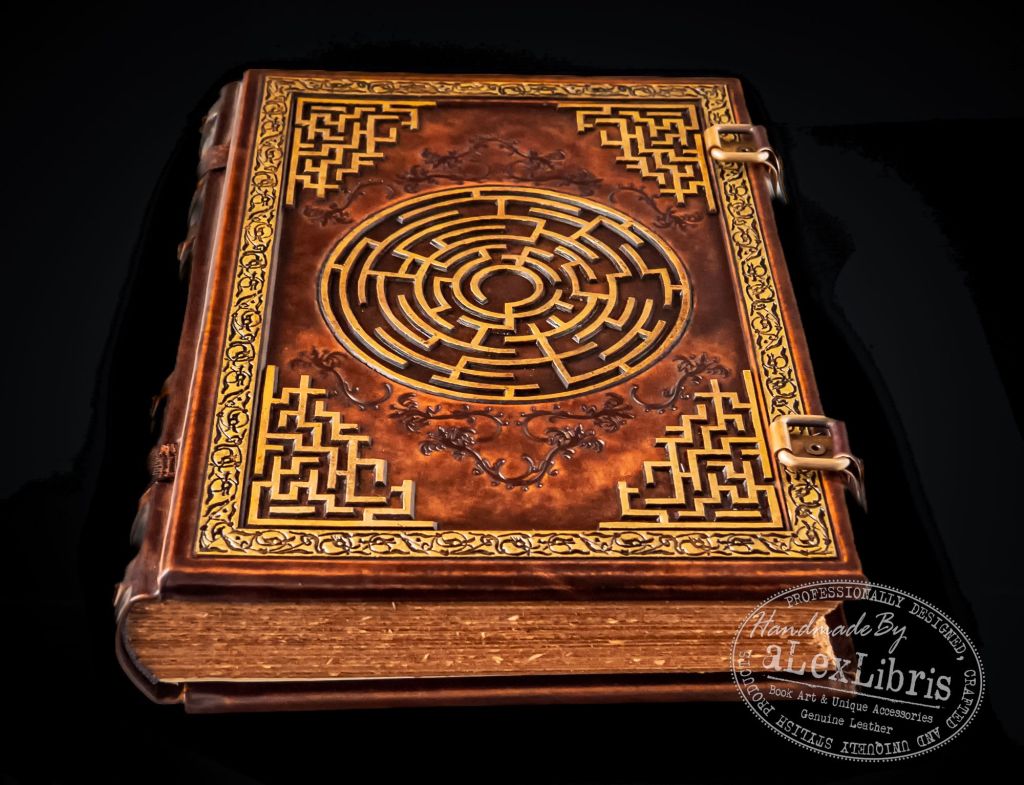 Adorning the corners and central detail are intricate labyrinths, painstakingly hand-carved and gilded, adding an air of mystery and intrigue.