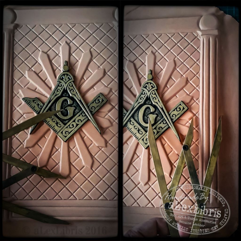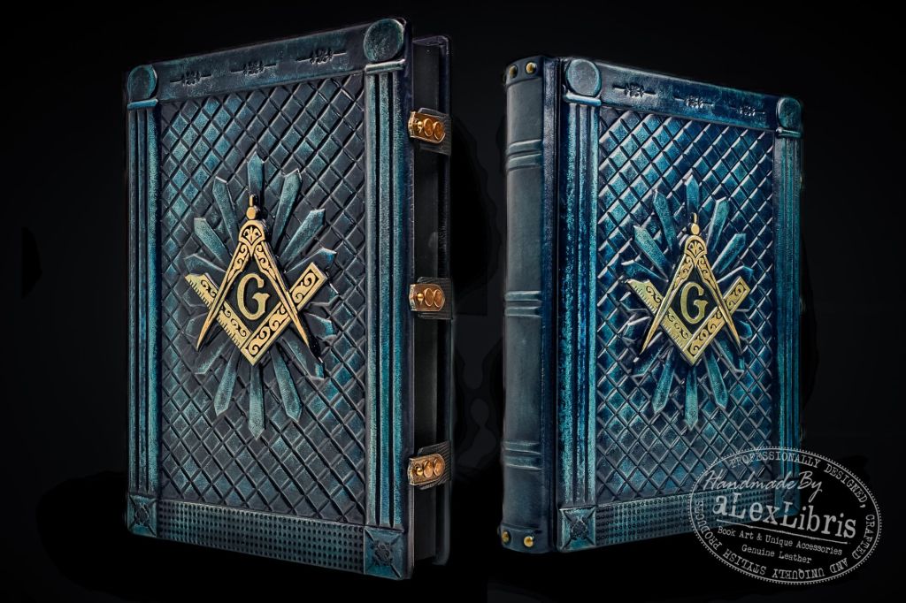 The cover of “The Sapphire Scroll” is a testament to the artistry and attention to detail. The deep blue leather, hand toned to perfection, exudes a sense of elegance and prestige. Intricate carved, embossed, and gilded elements adorn the cover, elevating the journal’s aesthetic appeal. The central Freemasonry symbol, hand-carved from thick leather and gilded using special bookbinder mixtures, serves as a focal point, representing the profound principles and ideals of Freemasonry.