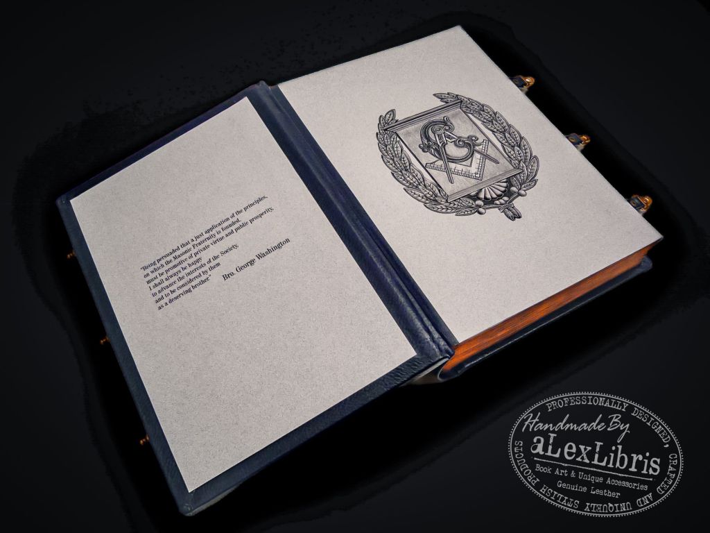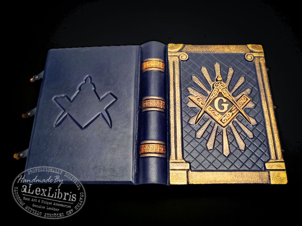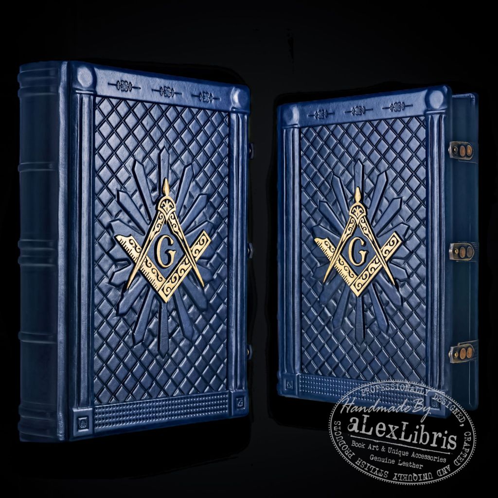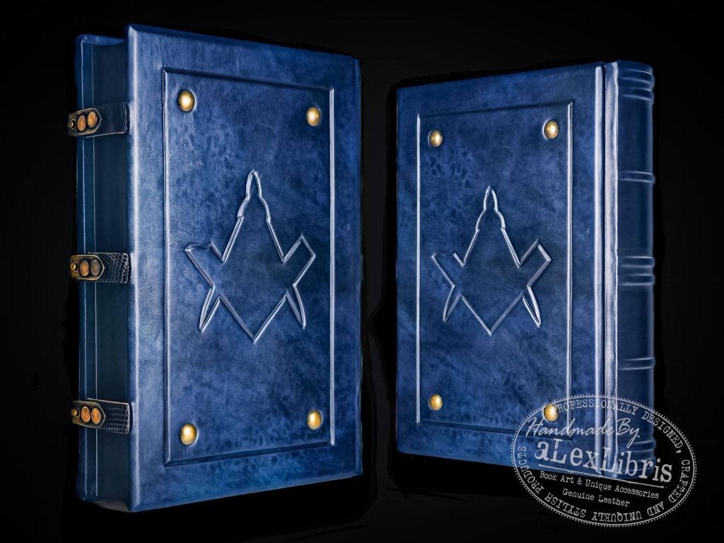 Bound in a deep blue leather cover, this exquisite journal holds within its pages the wisdom and symbolism cherished by Freemasons worldwide.