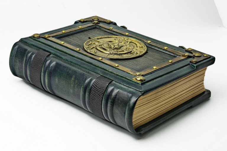 Bound in supple green leather, this extraordinary book stands as a testament to craftsmanship and esoteric knowledge. Its cover features a meticulously embossed emblem, symbolizing the profound insights and transformative experiences that lie within its pages.