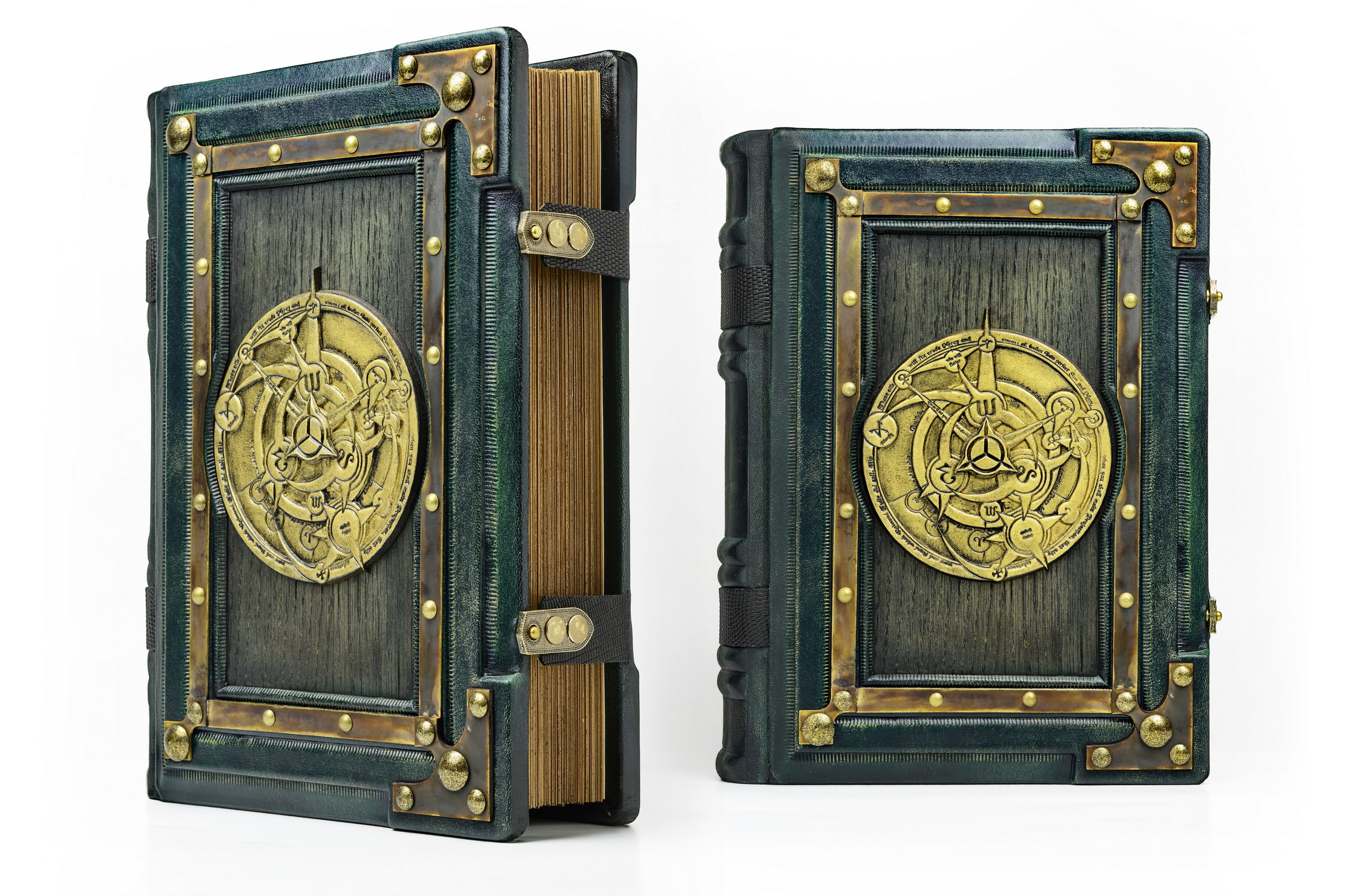 Bound in supple green leather, this extraordinary book stands as a testament to craftsmanship and esoteric knowledge. Its cover features a meticulously embossed emblem, symbolizing the profound insights and transformative experiences that lie within its pages.