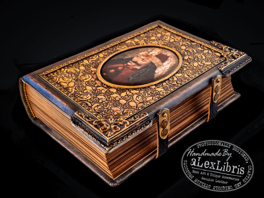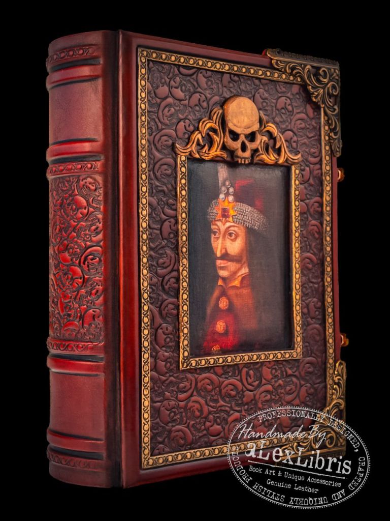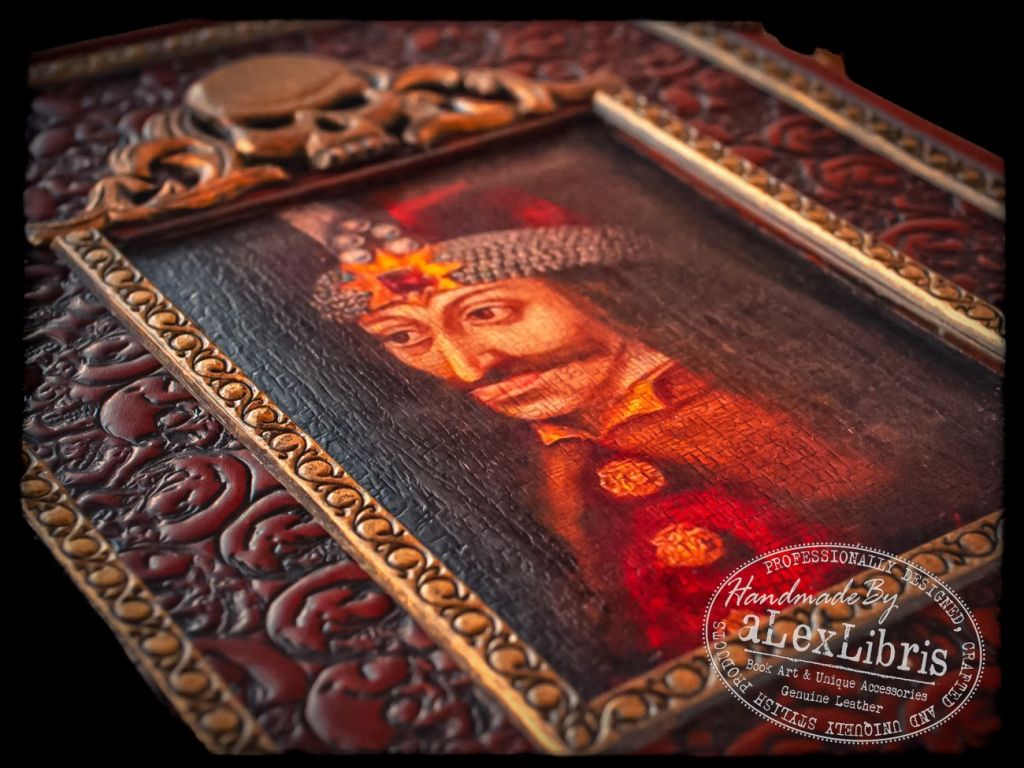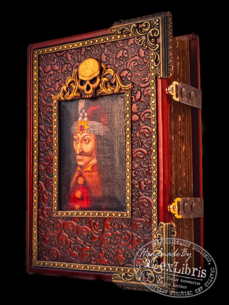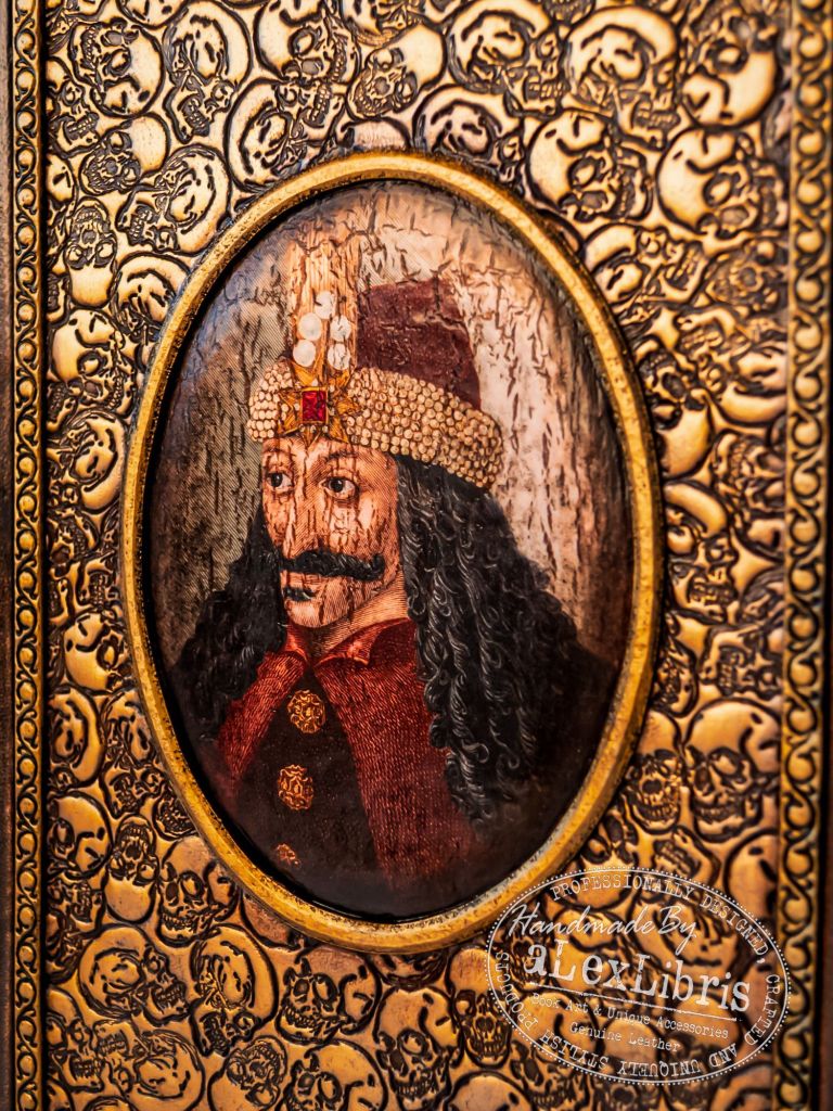 Embraced by skulls embossed leather, its surface is adorned with a captivating image of Prince Vlad at its center. Metal corners accentuate the journal, seamlessly merging with its thematic design. Within its pages lies the canvas for your thoughts, secrets, and revelations—an invitation to explore the depths of your own imagination.