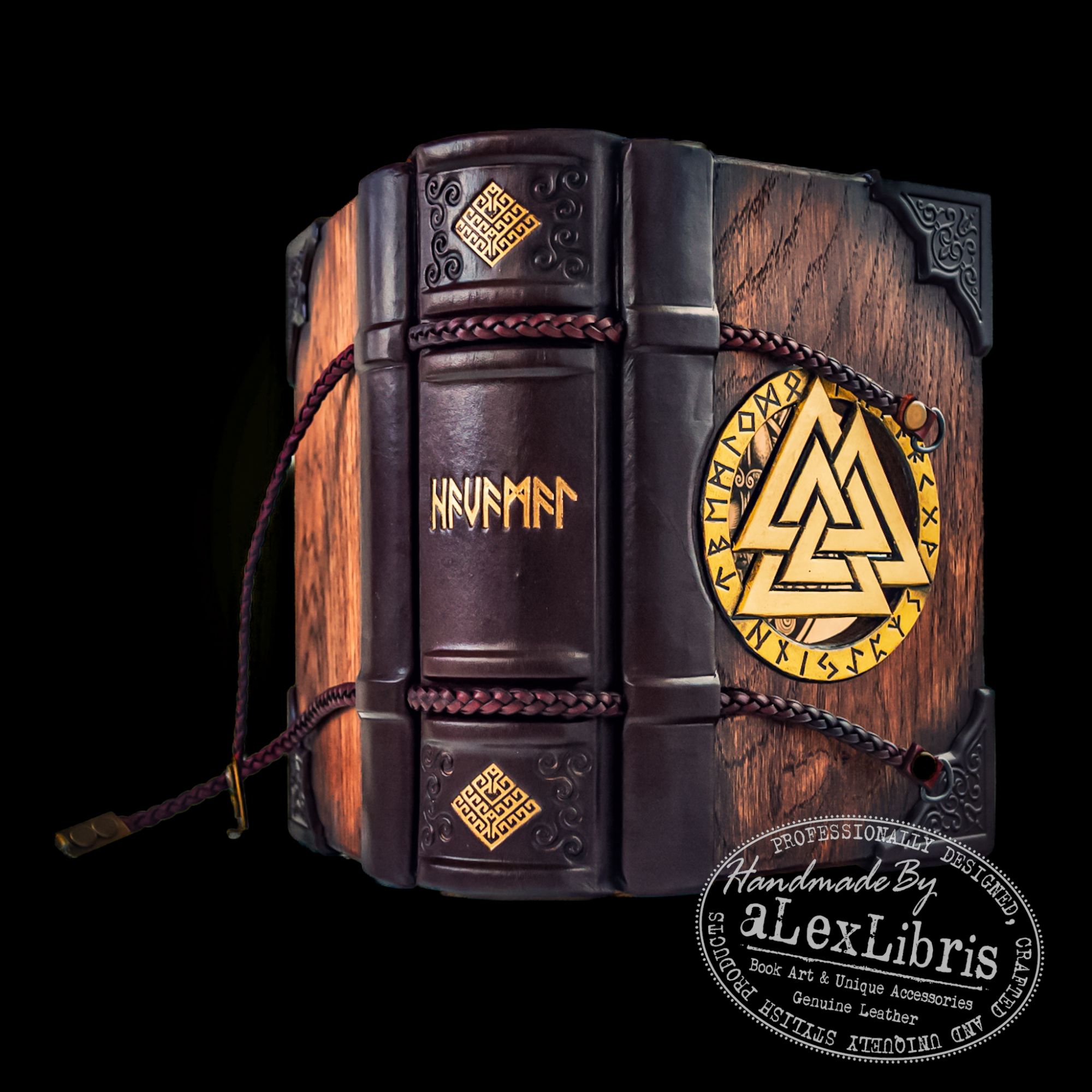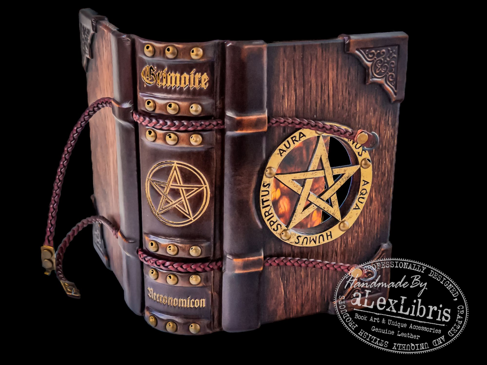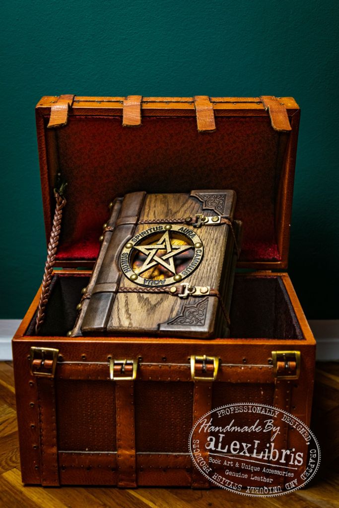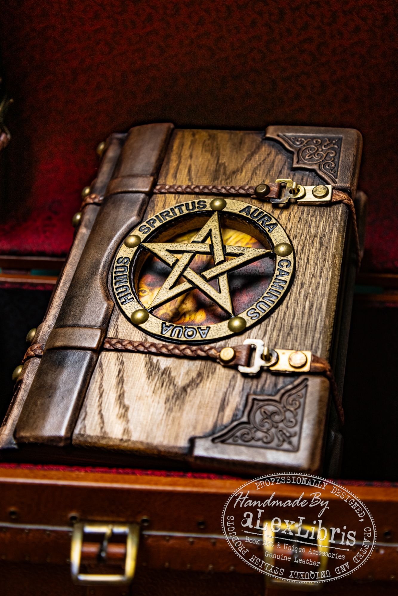 This wooden grimoire is made from solid oak wood, genuine leather, and metal details, it carries the presence of a book meant to endure — not only to be written, but experienced.